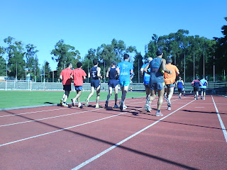 Pela segunda vez, fiz treino intervalado na pista de tartan do Estádio 1º de Maio. 7 km (36 minutos), com intervalos de 400m a 165 - 170 de frequência cardíaca, com marcha até atingir 120 de frequência cardíaca. Acabei o treino a fazer dois quilómetros seguidos, a cerca de 4:40 / km.Com o bom tempo e dadas as excelentes condições da pista, vou comprar um pack de dez senhas e incluir uma vez por semana treino intervalado no tartan.