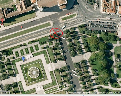 O ponto de encontro será na esquina do passeio assinalado no mapa, às 10h (fica entre os Jerónimos e o centro da Praça do Império, ambos na imagem).