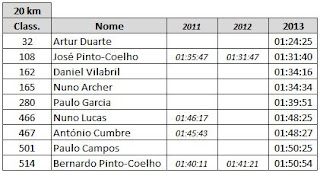 Meia Maratona de Almada (21km + 9,5km) - Tempos