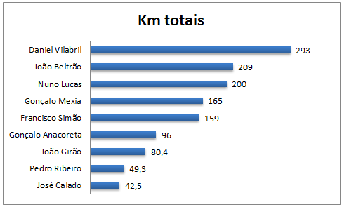 O João Girão com 80,4 km corridos em 5 treinos teve a melhor média com 16,1 km/ treino.