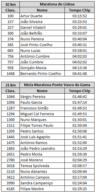 participações (31 na meia Maratona de Lisboa, 26 na corrida do Montepio), esta