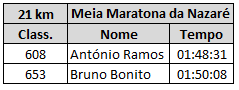 Meia Maratona da Nazaré (21 km) - Tempos e relato