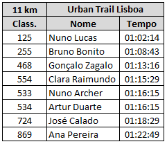 Urban Trail Lisboa (11 km) - Tempos e relato