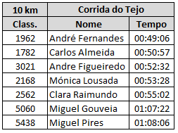 Meia Maratona de São João das Lampas (21 km) - Tempos