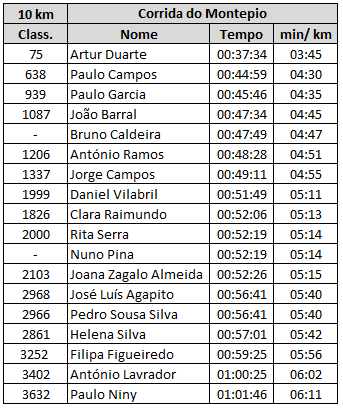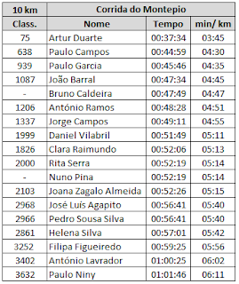 Destaque para os excelentes tempos alcancados nestes 10 km!