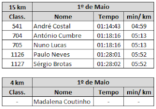 Corrida 1º de Maio (15km, 4 km) - Tempos