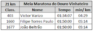Meia Maratona do Douro Vinhateiro (21 km) - Tempos