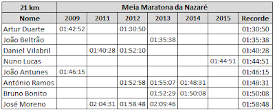 Meia Maratona da Nazaré (21 km) - Tempos