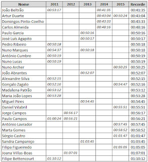 Esta vai ser a 42ª (!!!) edição da prova de 21 km e, apesar de ter um percurso ligeiramente diferente, devido às obras na marginal da Nazaré, ficam aqui os tempos anteriores para referência.