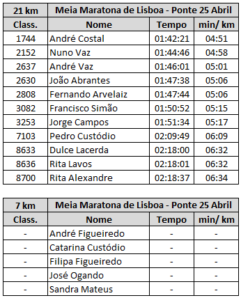 Meia Maratona de Lisboa (21 km, 7 km) - Tempos