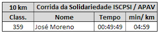 Corrida da Solidariedade ISCPSI/ APAV (10 km) - Tempos