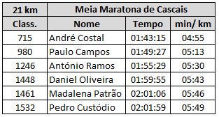Meia Maratona de Cascais (21 km) - Tempos