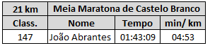 Meia Maratona de Castelo Branco (21 km) - Tempos