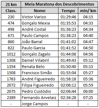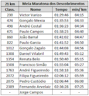 Meia Maratona dos Descobrimentos (21 km) - Tempos