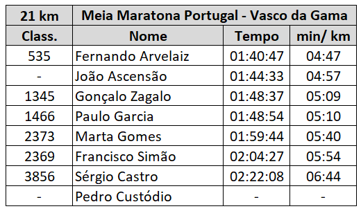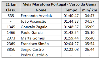 Meia Maratona Portugal - Vasco da Gama (21 km) - Tempos