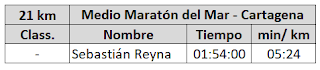 Medio Maratón del Mar - Cartagena (21 km) - Tiempo