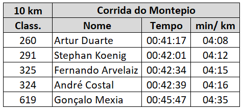 Os Pernas de Gafanhoto, muitos em preparação para a Maratona de Lisboa, compareceram e fizeram kms antes, depois ou ambos, e ainda fizeram muito bons tempos.