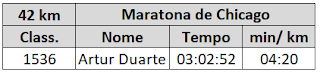 O Artur completou os 42 km naquela que foi a segunda participação da equipa na prova, com um tempo incrível pouco acima das 3h, o que dá uma média de 4:20 min por km!!!